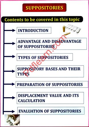 • Suppositories: Definition, types, advantages and disadvantages, types of bases, and methods of preparation